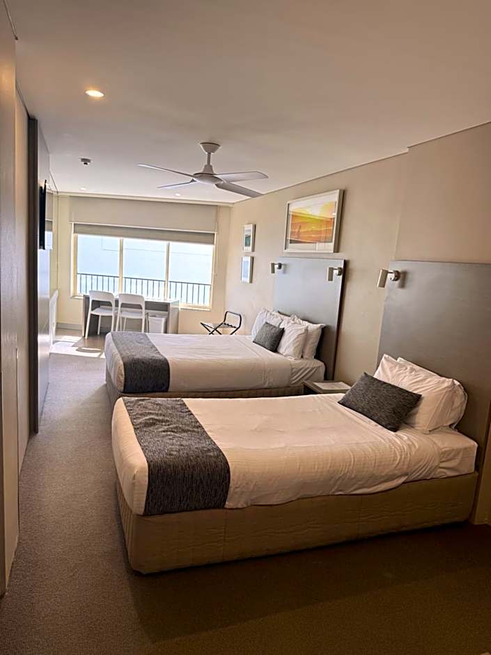 The Manly Paradise Motel & Apartments offers a variety of room types including Motel Queen Rooms, Motel Twin Bed Ocean View rooms, Motel Queen and Single Beach View rooms, and Motel Queen Bed Ocean View rooms. All rooms are non-smoking and have different occupancy options ranging from 2 adults to 3 adults and 1 child. The bed sizes vary from Queen size beds to Twin beds.
