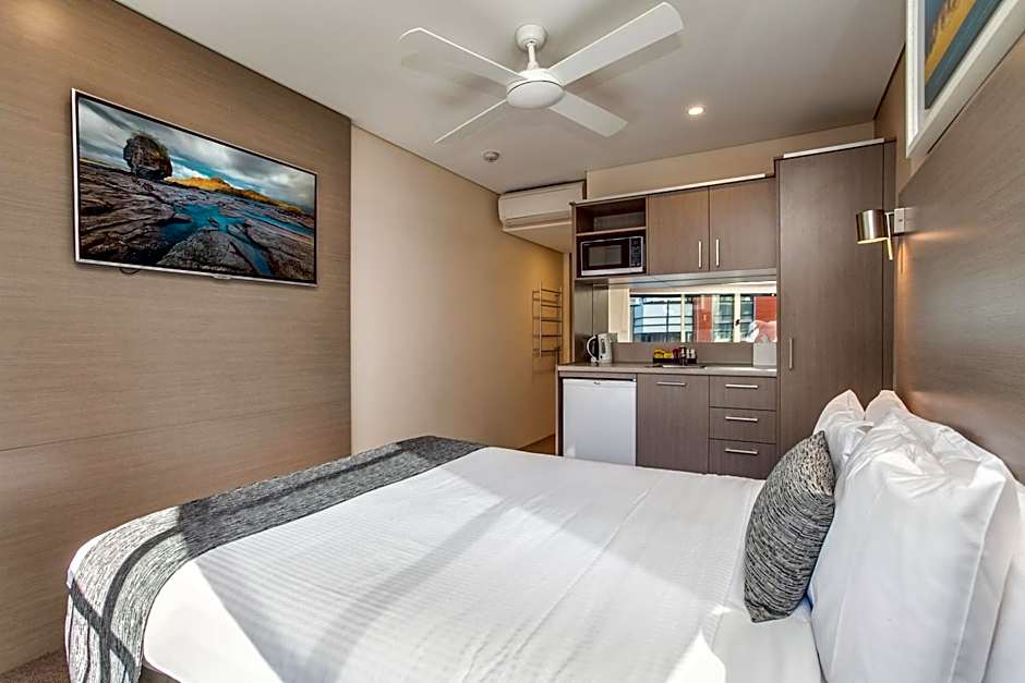 This air-conditioned queen room offers cable TV and a kitchenette with a refrigerator, microwave, toaster and tea/coffee making facilities.