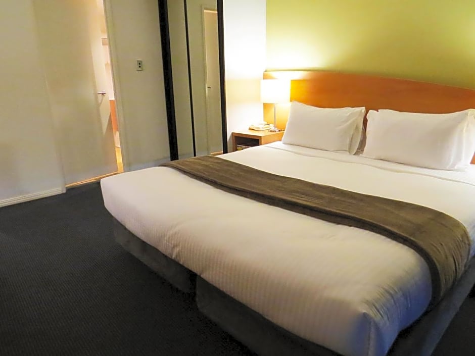 Featuring a private balcony with views overlooking Parramatta city or Rosehill Racecourse, the Executive Studio Apartments are fully self-contained and feature an open plan design, private bathroom with shower over bath and work desk area. Also provided in the apartment are laundry facilities, an LCD TV with WiFi access. The fully equipped kitchenette includes a bar fridge, hotplates, dishwasher and microwave so that meals can be prepared and enjoyed in the apartment.