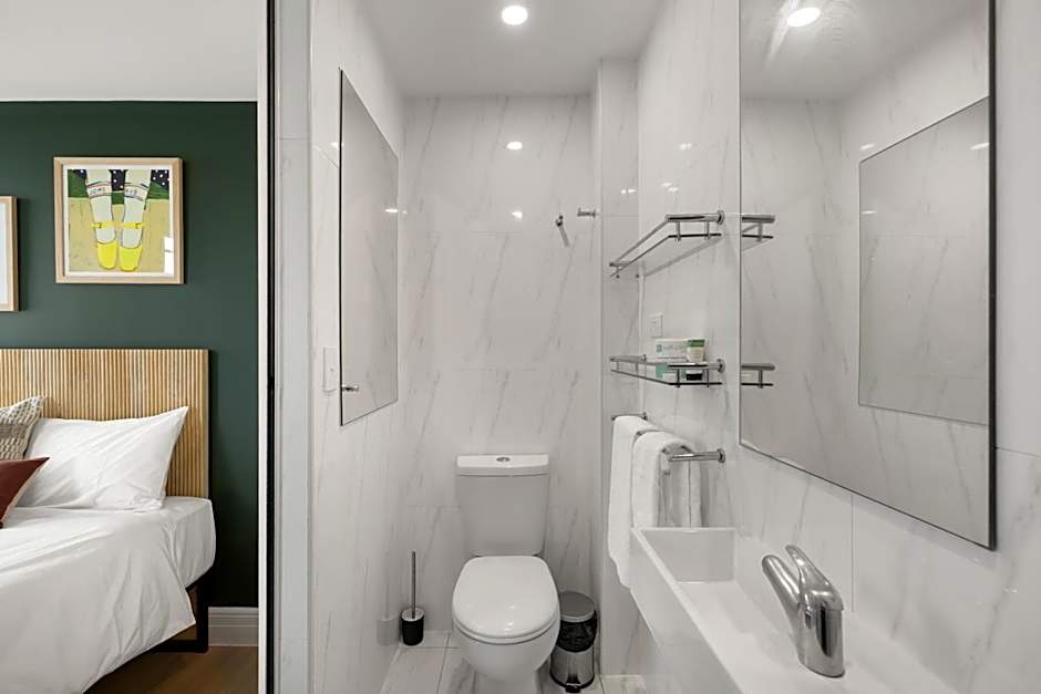 With heating and air conditioning, this unit has a mini-bar, toaster, kettle and an private bathroom with a hairdryer. Also features a desk, LCD TV, and high-speed internet access. A wardrobe, ironing board and iron, and safe are included. Guests can access the rooftop terrace and alfresco BBQ area with views of the Sydney CBD skyline. Daily housekeeping is included (excluding Sunday and public holidays).