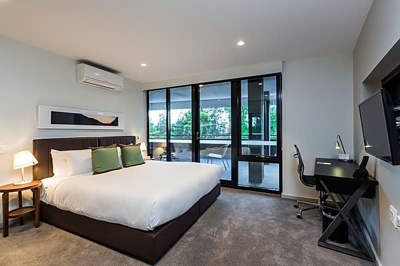 The Studio Panoramic Suites offer panoramic views towards the East. Included is a fully equipped kitchen with stove and microwave/oven, a separate dining area for 4 and a living area with a single sofa bed and coffee table. The suite has a King Bed (can be split to twin beds upon request) and can sleep a third guest on the single sofa bed with bed linen available upon request). These suites have key card access, reverse cycle heating/cooling, complimentary WiFi, washing machine and dryer, in-room safe, digital concierge, IP TVs (with cable channels) and movies on demand (extra charges apply).