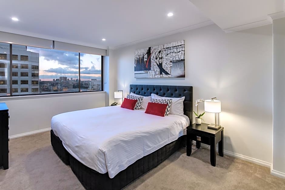 Nestled in central Sydney, this location provides easy access to local sights and the energy of the city for both short and extended stays. The accommodation lineup includes Studio Apartments, 1 Bedroom Suite, 2 Bedroom and 3 Bedroom options, plus larger luxury choices like the Penthouse and multiple Swisssuper Suite configurations.