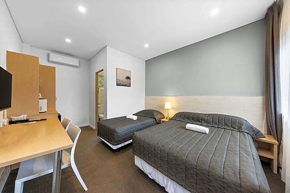 The Westside Motor Inn offers two types of rooms: Twin Rooms and Double Rooms. Both room types are 172 sqft in size and do not allow smoking. Twin Rooms can accommodate up to 3 adults and 2 children, with 1 Twin bed and 1 Double bed. Double Rooms, on the other hand, can accommodate 2 adults with 1 Queen size bed and do not accommodate children.