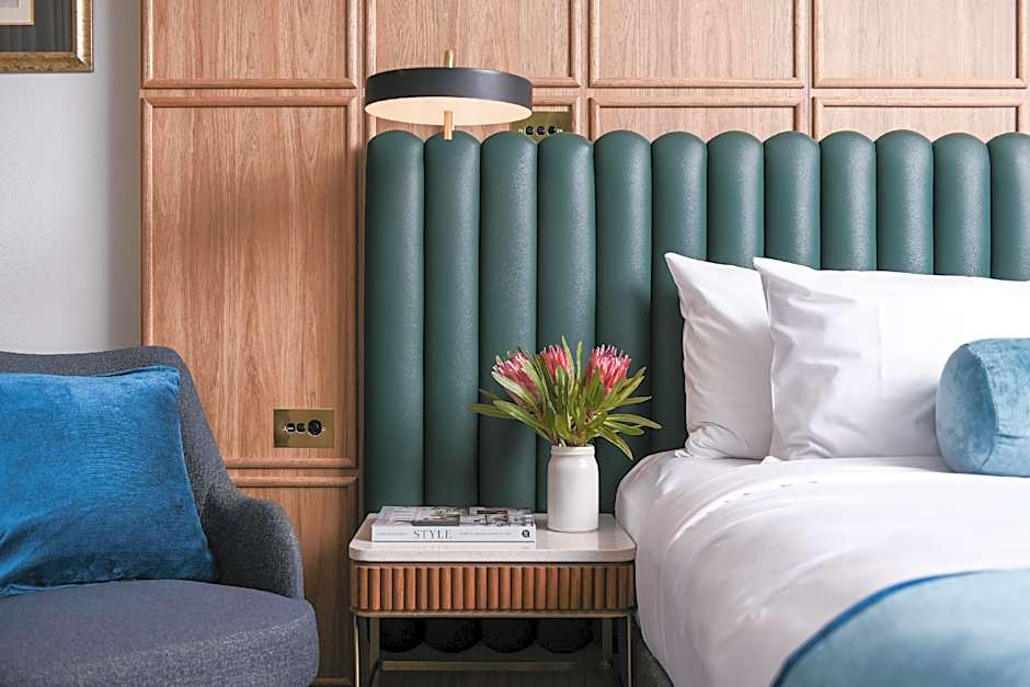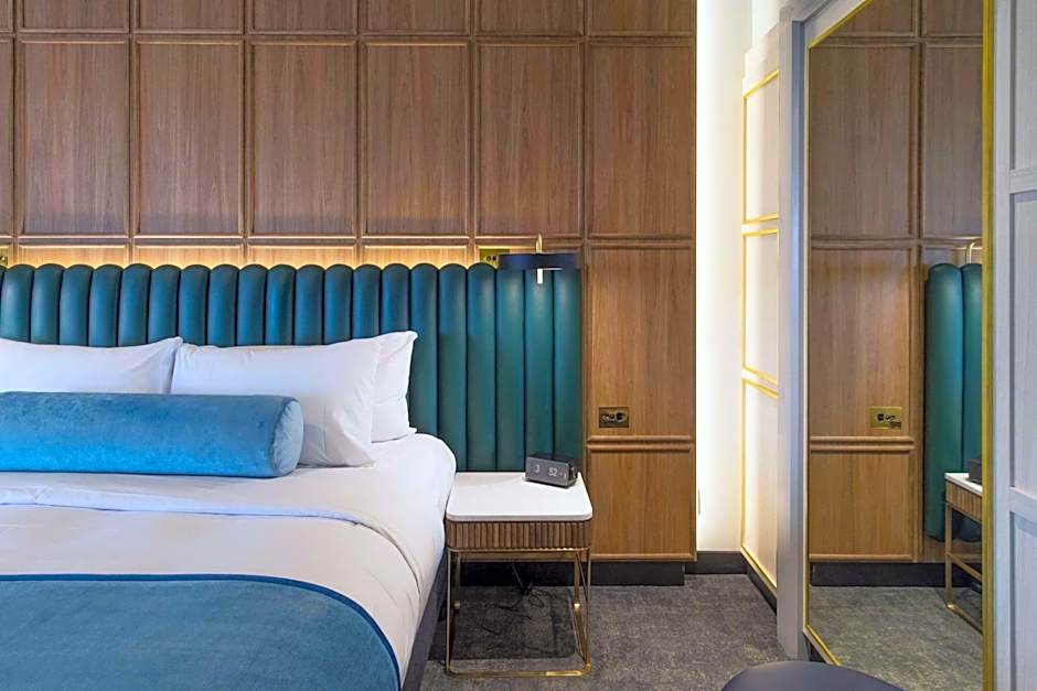 This king room features marble bedside tables, a desk and comfortable chairs, as well as air conditioning and noiseless ceiling fans. There is a marble bathroom with a rainfall shower. Facilities include a 60" 4K Smart TV, a wireless phone charger, USB charging ports and a coffee machine.
