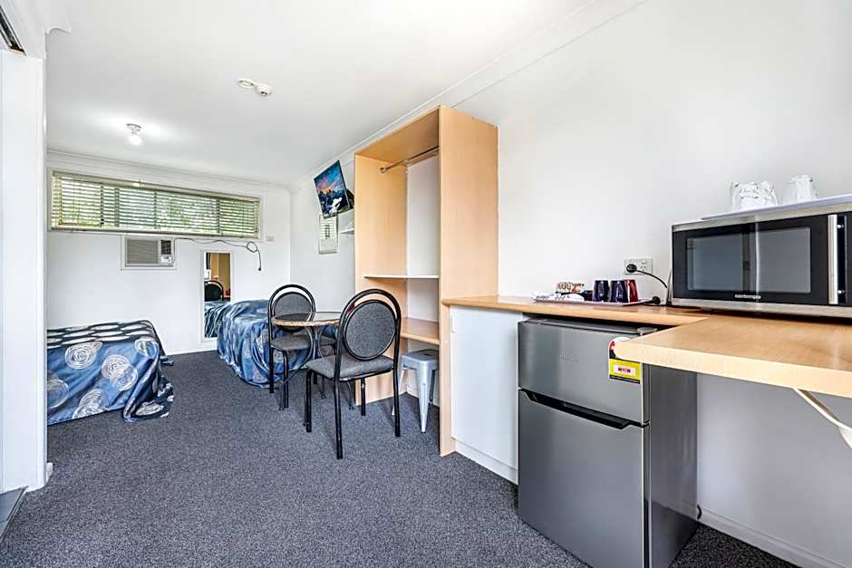 This room features a small kitchenette area, a bathroom, an LCD TV, a refrigerator, a microwave and tea/coffee making facilities. Towels and linen are provided. Bedding configuration: 1 x double bed 2 x single beds There is no capacity for additional guests, including children and babies.