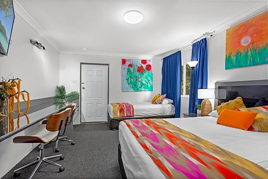 This is a motel with some lovely homely touches. Vibrant art on the walls and some nice details in the bathroom. The shower was excellent with a huge showerhead and recess. Nice to see a motel owner going the extra mile! The staff were friendly and having arrived from travelling on a Sunday evening, we were pleased to dine across the road at a welcoming pizza place. It was excellent for our one night's stay.