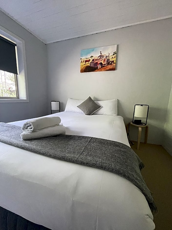 Spacious self-contained cabin. Large bedroom with comfortable bed. Well-appointed kitchen-so we could make our own meals (saving money on eating out) It was lovely to have an generous veranda with outside table and chairs for alfresco dining. The bush setting was amazing, lots of bird song, kangaroos and we saw a goanna! We loved the lake with the free canoes although we didn't get to use them this time. The same goes for the swimming pool and games room. We did go on an adventurous bush walk. It was also less than 5 minutes drive from beautiful Tathra Beach. It was the perfect "base camp" for exploring the South East.