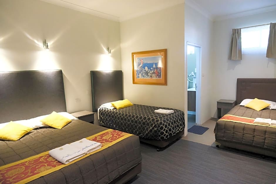 Located on the ground floor, this air conditioned room includes a small bar fridge, a flat-screen TV and DVD player. It also offers a private bathroom with a shower. Free WiFi and free car parking are provided as well as a toaster, hairdryer, iron, ironing board and a support mattress. Bedding: 1 queen-size and 1 single bed.