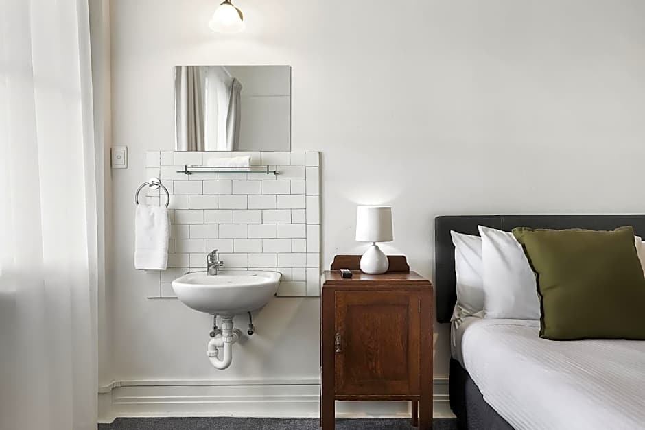 Shared bathroom is external to the room and shared with other guests.