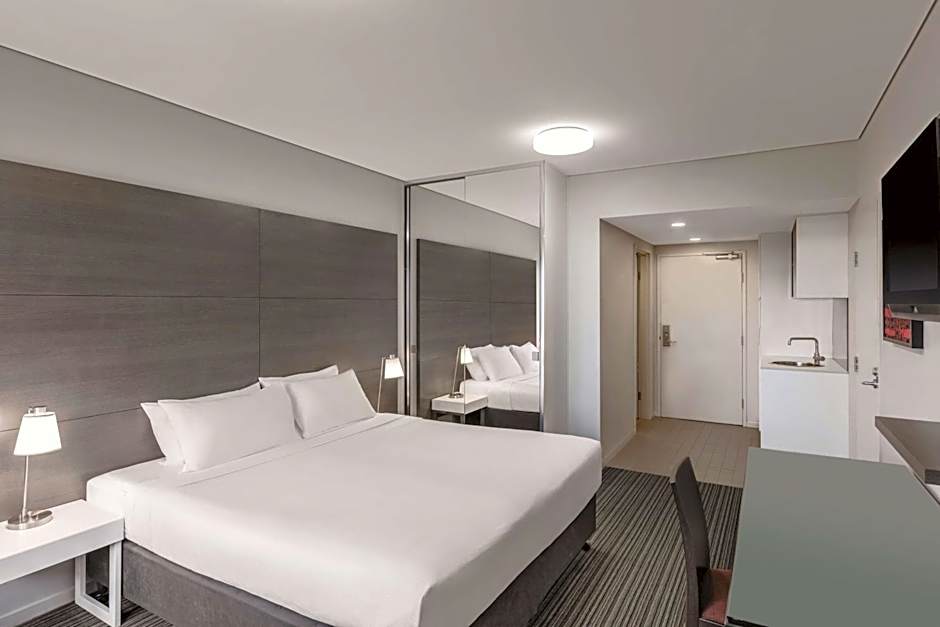 Includes modern stylish décor, separate lounge/dining/work areas, plus full kitchen and laundry facilities. Fully equipped kitchen with microwave, full size fridge, dishwasher & utensils. Room size: 45 sqm.
