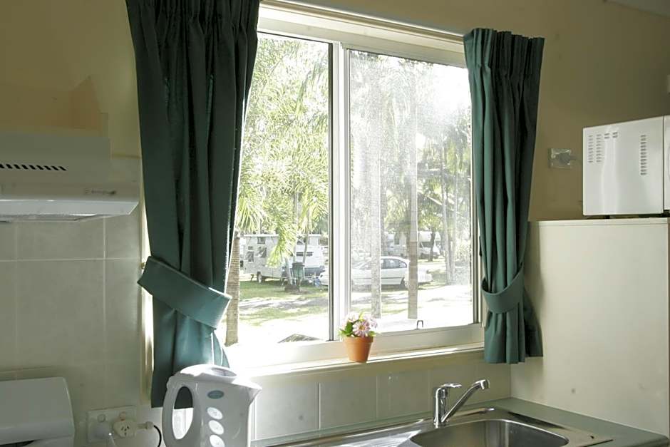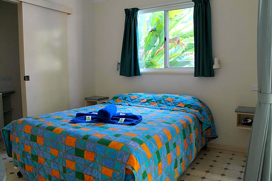 This open-plan, self-contained villa offers 1 queen bed in the living area with linen provided. It includes an private bathroom, kitchenette, TV and air-conditioning. Car parking is provided beside the villa.