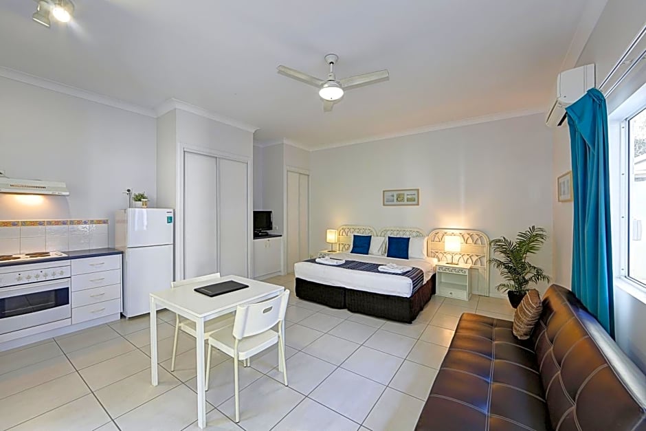 Smaller in size than the apartments, however larger than most motel rooms, these suites feature a king-size bed, plus 2 single-sized bed, which can be converted into another king-sized bed. Air conditioning an private bathroom and a kitchenette with a kettle, microwave, toaster, tea/coffee making facilities are available. There is free WiFi, a TV with cable channels and guests have access to the Sandcastles Resort Pool and barbecue. Covered parking is available.