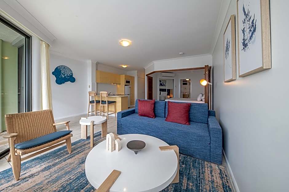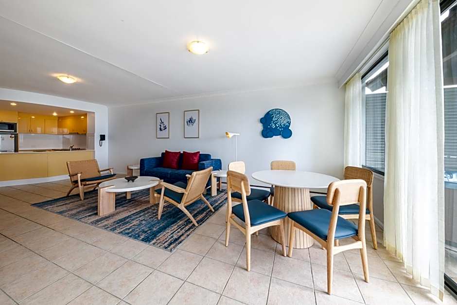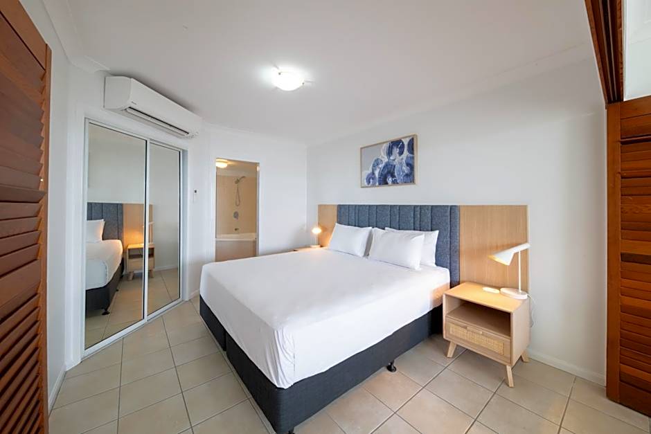 Modern and spacious, these fully self-contained apartments have a full kitchen, lounge room, laundry, main bathroom, private bathroom and balcony with ocean view. Includes LCD TV, free cable channels, elevator access and covered parking.