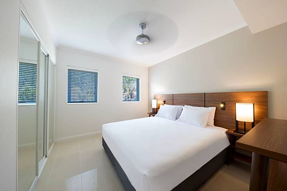 This spacious apartment features a corner spa bath and a private balcony offering stunning views over the Coral Sea. There is a kitchenette, laundry facilities and a lounge area with a Smart TV including cable channels. Elevator access and covered parking is included.
