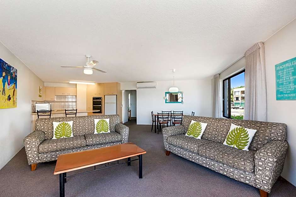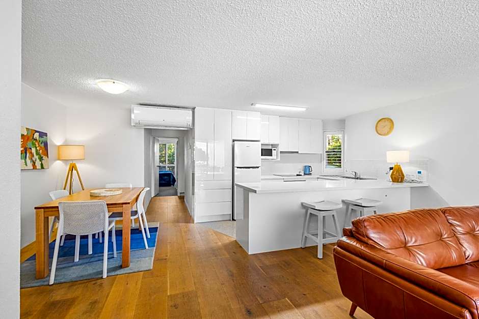 This renovated apartment features ocean views and air-conditioning. It includes a private North facing balcony and is located opposite the beach and is within easy walking distance to restaurants, shops, cafes and the Surf Club. Free WiFi secure covered parking is available.
