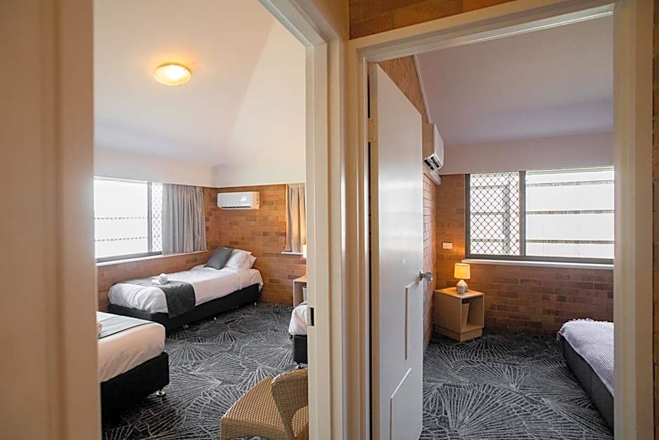 This 2-bedroom suite features a queen-sized bed in 1 bedroom and 3 single-sized beds in the other. Room amenities include living area, separate bathroom, air-conditioning, tea/coffee making facilities, mini fridge, linen, towels, free toiletries and flat-screen TV with free-to-air channels.