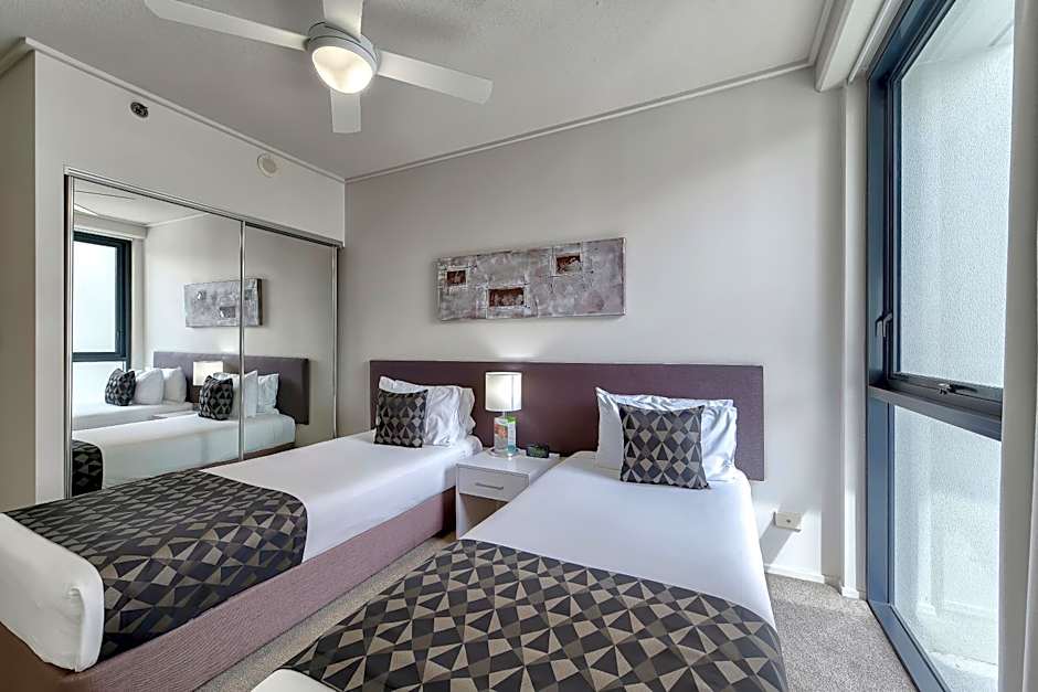 Flynn Brisbane offers two types of rooms, including Two-Bedroom Apartments and Two-Bedroom Executive Apartments. Both room types are apartments and have a spacious size of 700 sqft and 840 sqft respectively. Smoking is not allowed in any of these rooms. The Two-Bedroom Apartments have two Queen size beds and accommodate 4 adults and 3 children, while the Two-Bedroom Executive Apartments have two Twin beds and one Queen size bed, accommodating the same number of guests.