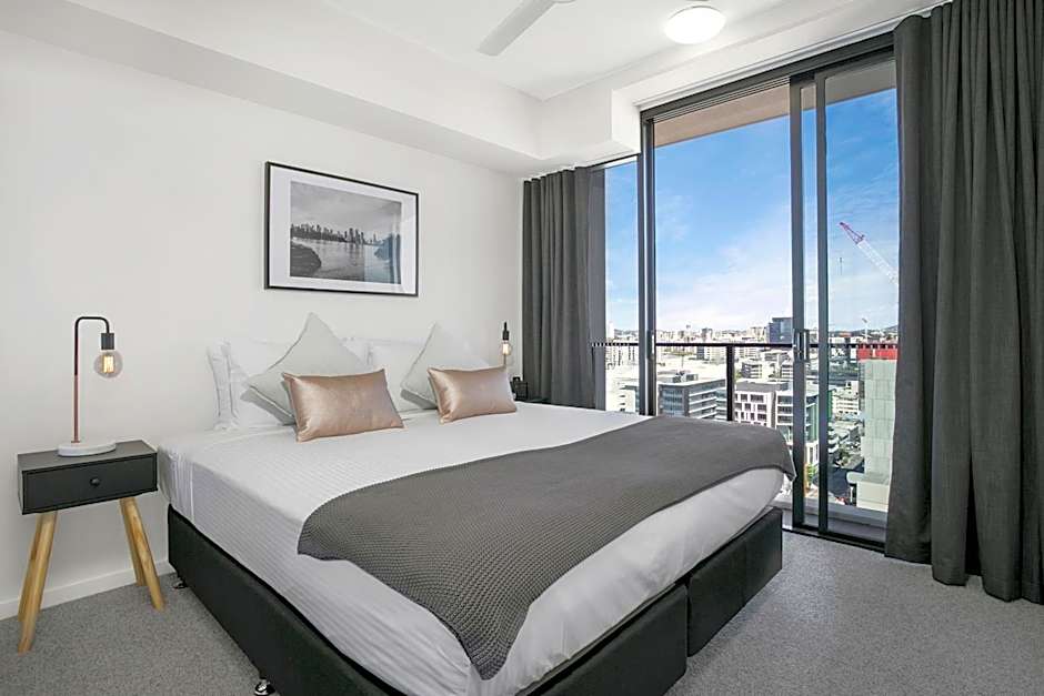 Featuring stunning uninterrupted views of Brisbane’s Central Business District (CBD), this 1-bedroom apartment is fully self-contained with either a queen-size bed or a king-size bed. There is a separate lounge area, full kitchen, laundry facilities and a private balcony. The accommodations includes cable TV channels and unlimited WiFi.