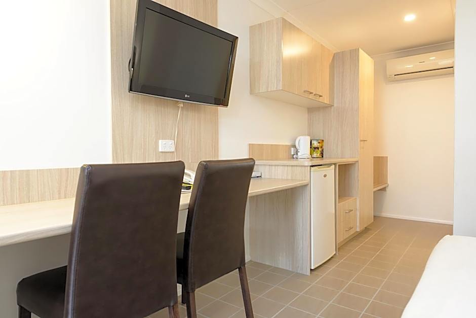 The room was much bigger than we expected and had a full size fridge, which was very handy, and was spotlessly clean. Our room also backed straight onto the pool area, but was positioned in a way that it was very quiet. Beautiful garden areas created a perfect wall against the noise of the traffic on the main road. We didn't even notice the traffic. Our room had a queen and single bed, and still had plenty of room to walk around. The air-conditioning was nice and cold, and we were surprised to find that the air-con had been turned on earlier, so when we opened the door it was already cool in the room. It was a hot day, so that was really lovely. The staff were friendly and always helpful.