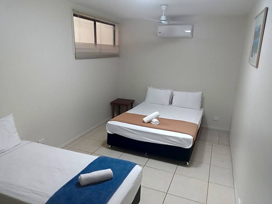 This one bedroom apartment has a kitchenette. It has a queen bed and 3 singles, 1 single bed is located in the living area. This air-conditioned ground floor apartment has a dining table and couch. There is also a private bathroom, TV, iron, hairdryer, kitchen utensils and crockery. This is a ground floor room located at the front of the property. There is no balcony or patio.