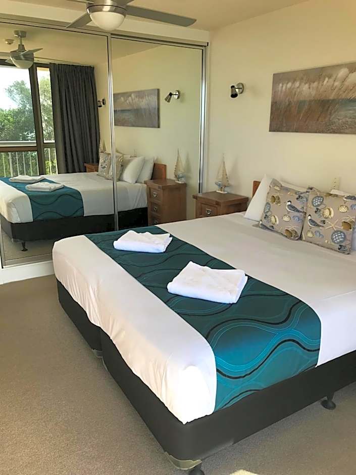 The 1-Bedroom Waterview Apartments are located between the 1st floor and 4th floor. These apartments have a full kitchen with a stove, a microwave and a fridge. Amenities include laundry facilities and access to the lounge area offering a TV with free in-house movies and a DVD player. The fully equipped apartments overlook the Pumicestone Passage.