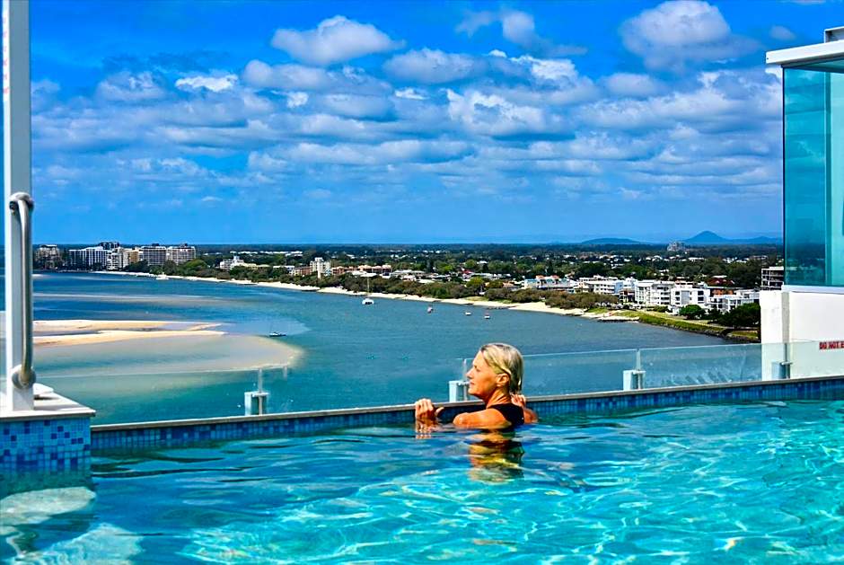The Pumicestone Blue Resort has one pool that is available all season. The pool is located outdoors and is heated. It is an infinity pool situated on the rooftop and offers a view. However, there are age restrictions on this pool as only adults are allowed to access it.