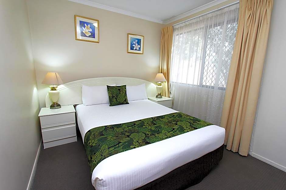 Room options include Deluxe Queen, Twin Room, Economy, Suite, Queen Room, and Apartment, catering to a range of party sizes and travel styles. These choices provide flexible space after a day of exploring Chinchilla, all within a cheerful, garden-flanked setting on the Warrego Highway.