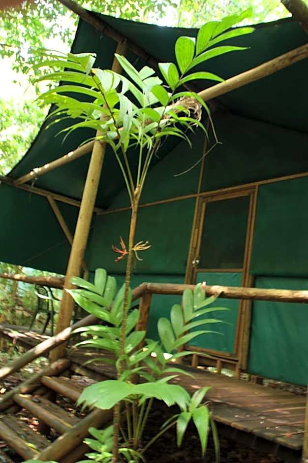 The Safari Hut shares a common wall with another Safari Hut. There is a double-sized bed plus 2 bunk beds and a shared balcony. Bathroom facilities are shared, and are a few yards away.