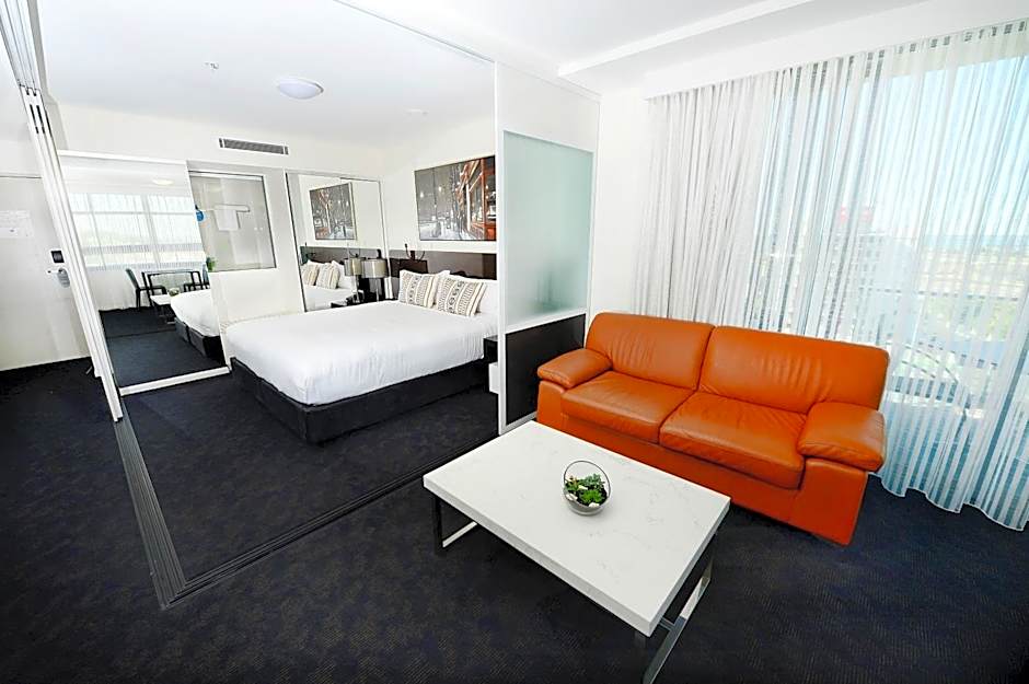 We were welcomed by staff like royalty for our 25th wedding anniversary. During checkin we were told we were given a FREE room upgrade and they even put a bottle of bubbles in the fridge for us. It was just beautiful and our view was lovely. The room was very spacious with a full size fridge, kitchen/cooking facilities and washing machine & dryer. It’s close to a lot of eateries and coffee shops and our breakfast was fabulous. There’s a full size mirror and the bathroom is great. The shower door didn’t leak so the bathroom floor stayed dry which is always nice. It was just perfect for us who had been travelling all day and we’re looking for a comfortable bed. We will be staying here on our next visit as it was such good value for money - especially with breakfast. Thank you to management and staff for surpassing all expectations.