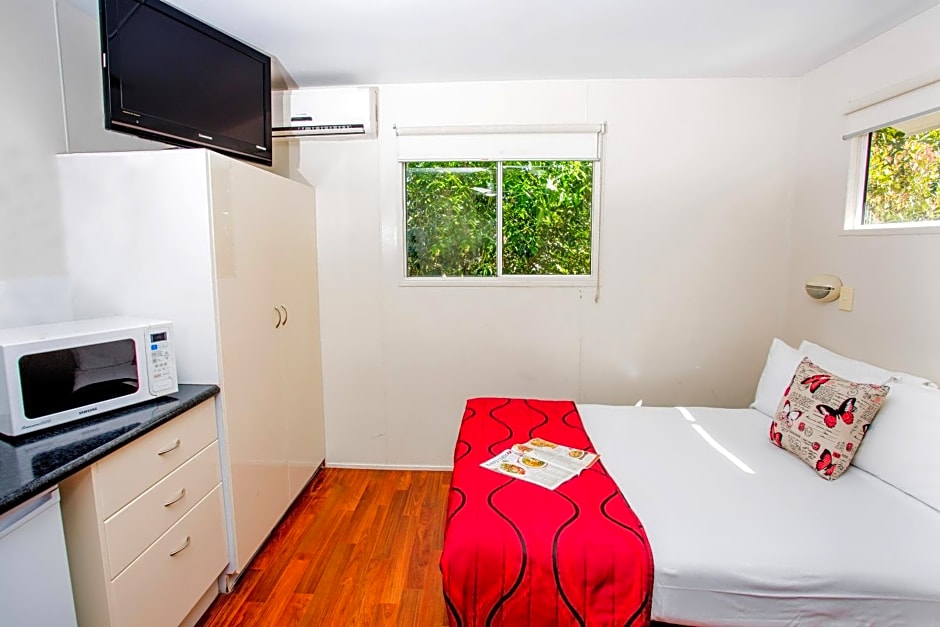 These refurbished Bungalows are surrounded by tropical palm trees to provide a sense of serenity and seclusion. There are two Bungalow styles to choose from and both are 3.5 stars. The Bungalows feature open plan living and dining areas with a spacious kitchen. The lounge area has a TV and DVD player to jeep the family entertained. Bungalows 1, 2 and 3 offer 1 x Queen Bed and 1 x Tri Bunk bed and also feature easy access ramps. These Bungalows also open onto a generous balcony, with expansive views over the Riverwalk area at the property. Bungalows 4, 5 and 6 offer 1 x Queen Bed, 1 x Bunk Bed and 1 x Single Bed and they are set back into tropical gardens and located nearby the fully equipped camp kitchen. You can also sit back and relax on the balcony and enjoy the outdoors. Please note as there are two layouts of the Bungalows, if you have a particular preference, please mention this when booking. Please note that the bedding configuration is not guaranteed and will be confirmed upon arrival, subject to availability