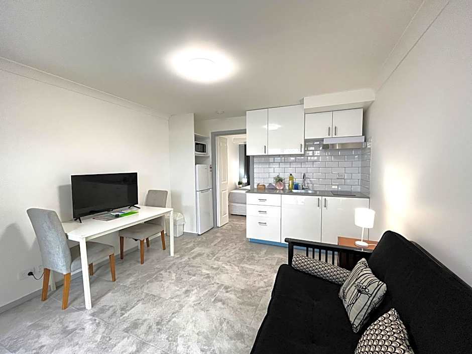 This self-contained unit features a queen-sized bed, kitchenette and a balcony or courtyard.