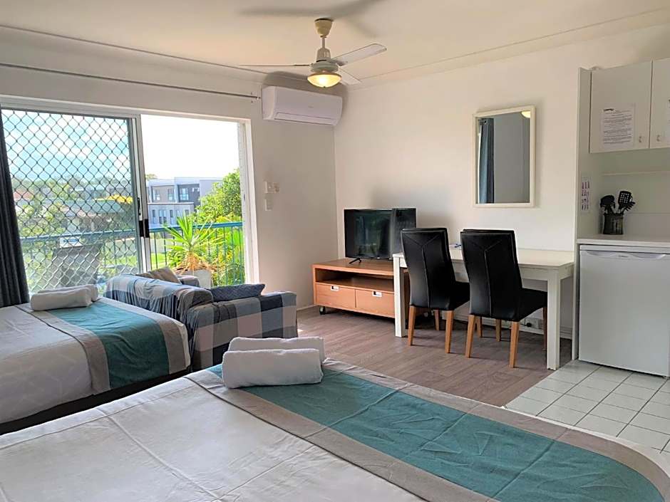 The room was excellent Clean and tidy desk to do work at Microwave oven and fridge if required .Swimming pool was tidy and clean bed was comfortable - airconditioning work well also a fan if required . Quiet at night could not hear traffic - stay was very good