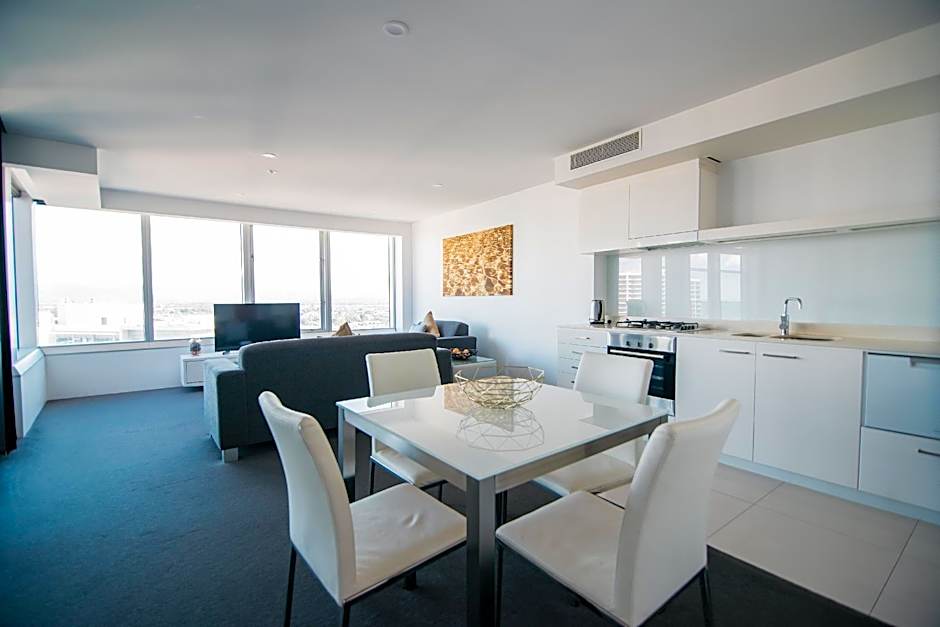 The 3-Bedroom Sub Penthouse apartments offer 225 square yards of luxurious living. The apartments are located from Levels 60 and up. This room will not be serviced for the duration of your stay. Guests can purchase additional towels from reception or alternatively use the laundry in the apartment to wash their own towels. This room includes a 25% discount for SkyPoint Climb.