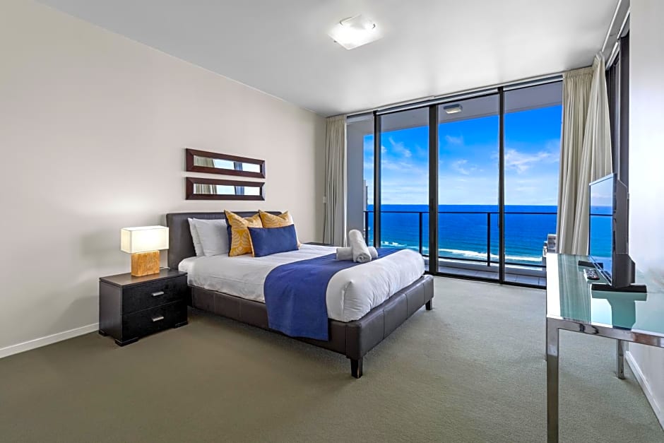 Located above level 11, this air-conditioned luxury apartment features a large shuttered balcony offering ocean views. It includes a fully equipped kitchen with European appliances, laundry facilities and a plasma-screen TV with cable channels. Please note bedding configuration is either: - One queen, one double and two single beds or - One queen and four single beds or - Three queen beds or - 6 single beds. These bedding configurations are upon request and subject to availability. Please note that the price is based on 6 guests. Maximum occupancy is 7, with the 7th guest accommodated on a rollaway bed (see Hotel Policies).