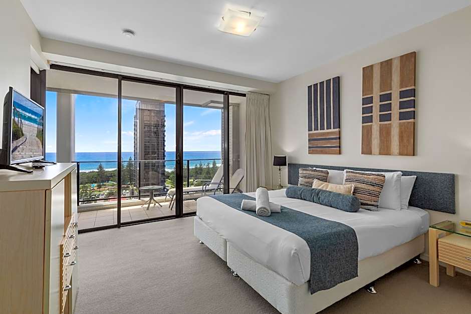 This self contained apartment features a private balcony with ocean views. It also includes reverse cycle air-conditioning, a plasma TV and a fully equipped kitchen with European appliances. Please note bedding configuration is either: - Two queen beds and two single beds or - Three queen beds or - One queen bed and four single beds. These bedding configurations are upon request and subject to availability.