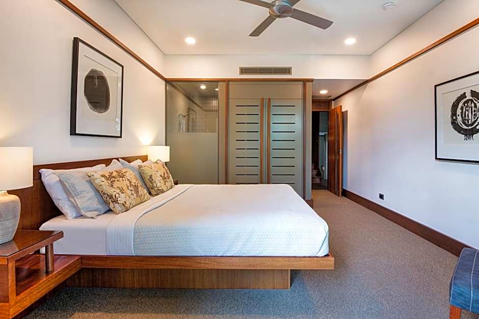 As the sun dips below the horizon, Yacht Club Villas transforms into a vibrant hub of relaxation and delight. Picture yourself lounging by the adults-only outdoor pool, drink in hand, watching the sun set over the sparkling waters of Hamilton Island. This serene oasis is perfect for those seeking a peaceful retreat while still being just a stone's throw from the lively island atmosphere. The gentle sound of waves lapping at the shore and the scent of jasmine from the gardens create an ambiance that beckons you to unwind and enjoy the moment.