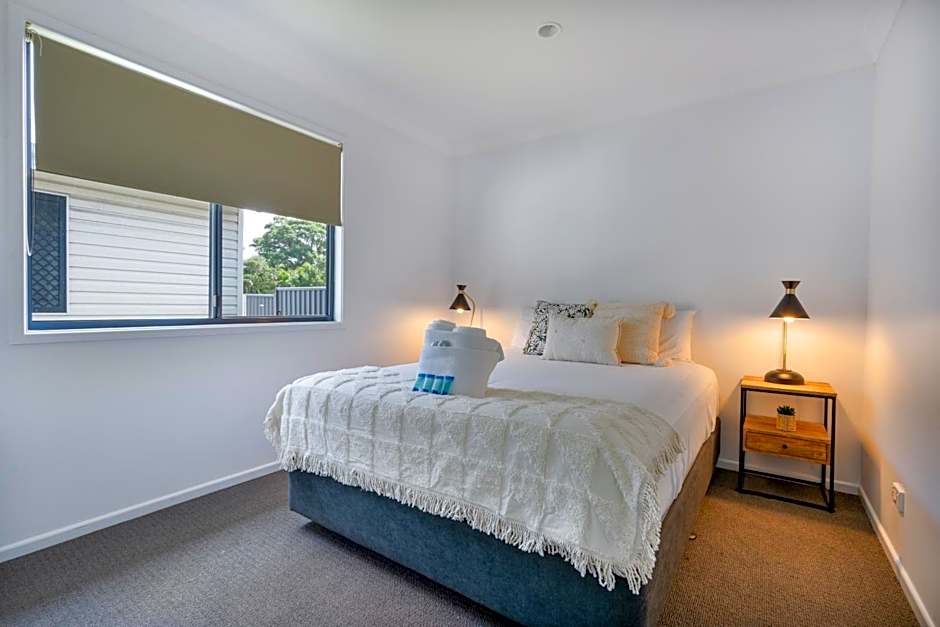 Room options span Chalet, 2 Bedroom; Villa, 2 Bedroom; Deluxe Cabin, 2 Bedroom; Budget Studio, Double; Cabin, 1 Bedroom; Duplex; and Executive, offering a range of layouts to suit couples and small families. Each space emphasizes comfortable living with thoughtful features, creating a welcoming retreat after a day of sunny adventures and discovery along Hervey Bay’s shoreline.