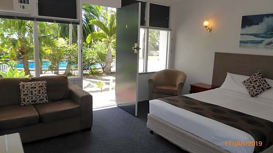 This room features 1 queen bed and a kitchenette equipped with a microwave, crockery, cutlery, toaster and tea/coffee making facilities. There is a balcony or patio overlooking the garden and pool, offering filtered bay views.