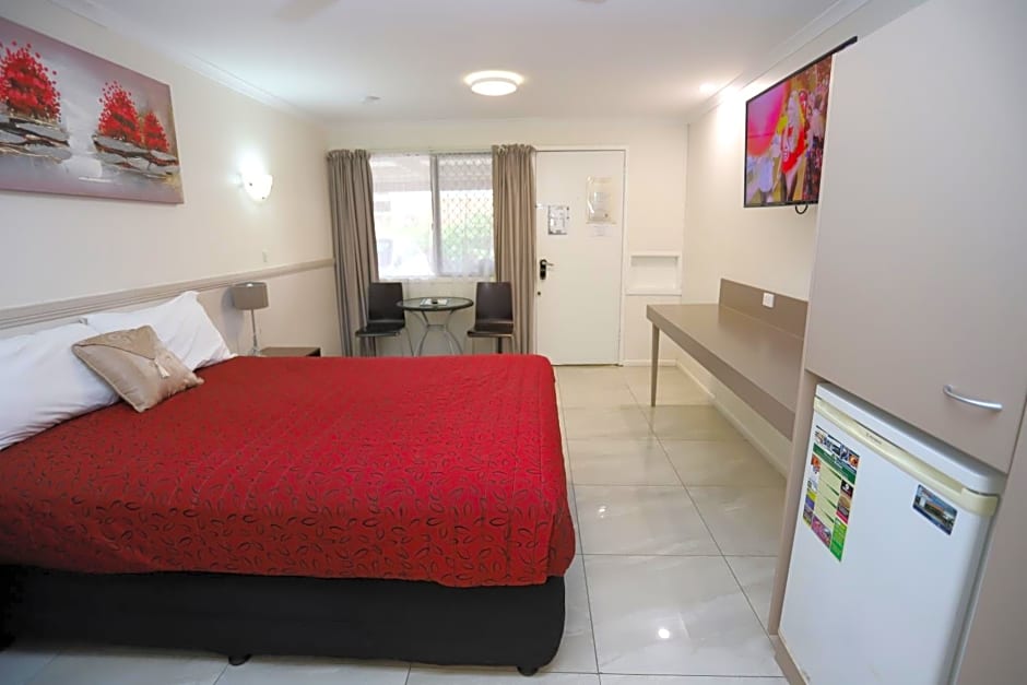 This ground floor room has 1 queen-sized bed and features free WiFi, cable channels, an LCD flat-screen TV, air-conditioning, a private private bathroom, hairdryer, ironing facilities, toaster, microwave, refrigerator, tea/coffee making facilities and complimentary toiletries. Covered parking is available in front of the room.