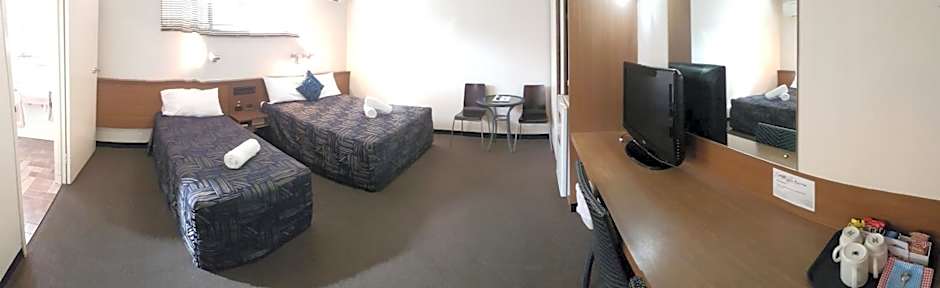 This fully renovated ground floor room with has a comfortable queen-sized bed and features free WiFi, cable channels, an LCD flat-screen TV, air-conditioning, a large new private private bathroom, hairdryer, ironing facilities, toaster, microwave, refrigerator, tea/coffee making facilities and complimentary toiletries. Covered parking is available in front of the room.