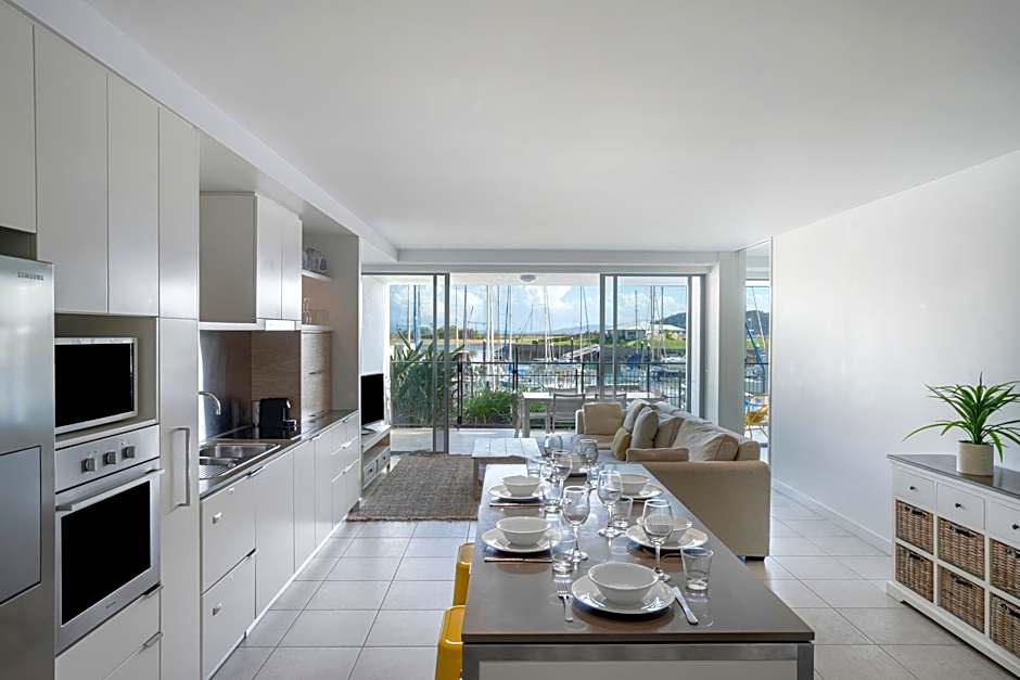 This apartment features its own plunge pool and a spacious balcony overlooking the stunning marina. These apartments are stylishly appointed and provide private accommodations with 3 large bedrooms, 2 bathrooms, a gourmet kitchen and a large open plan living and dining area.