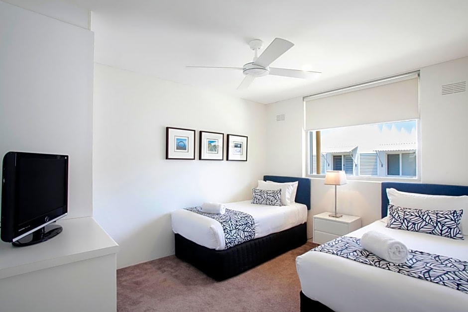 This self-contained one-bedroom apartment features a spacious living area, a bathroom and a private balcony with views of the garden, Hastings Street or the resort.