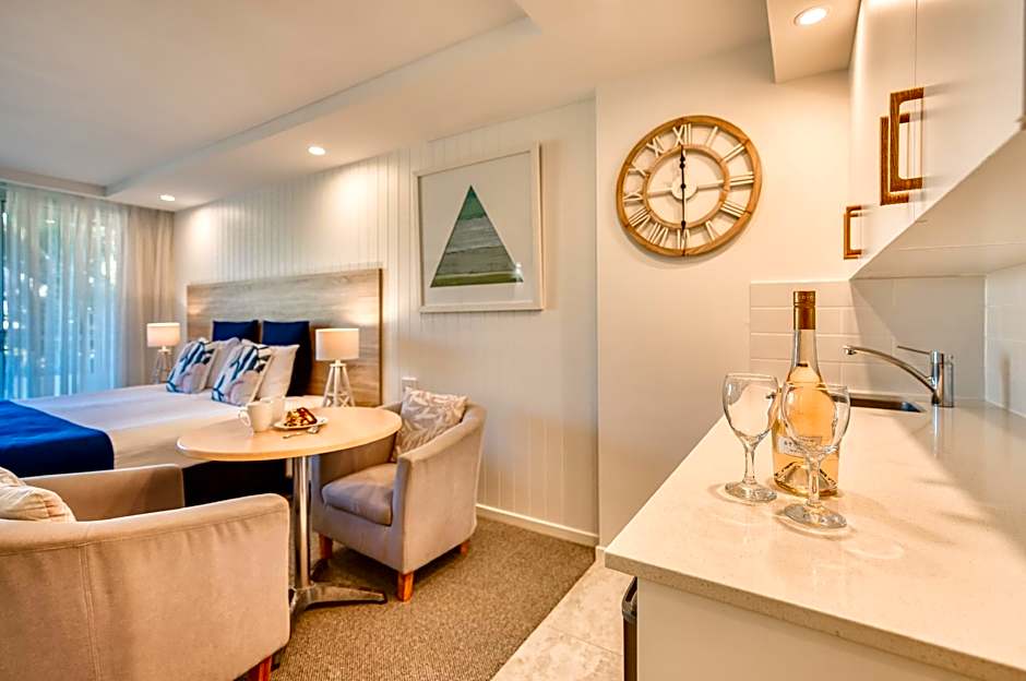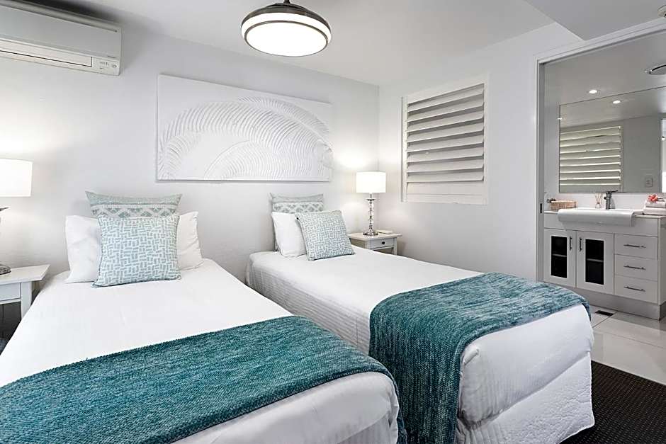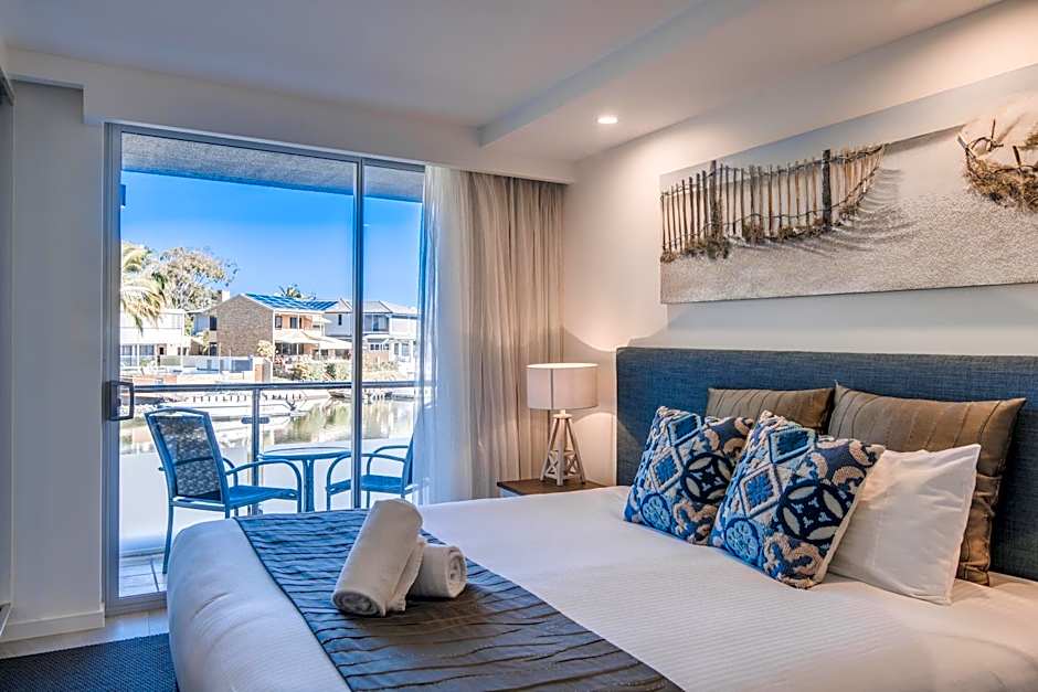 We had a room backing onto the canal and it was lovely to sit on our balcony and watch the world go by - great view. The location is directly on Hastings Street and a short walk to the beach and many many restaurants. The room itself was very clean and comfortable. We had a hire car and could always manage to get a car spot which was a great bonus.