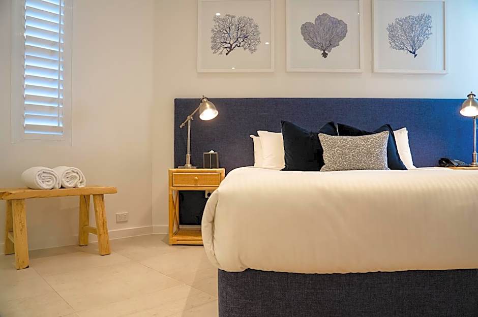 The rooms at On The Beach Noosa Resort include Penthouse 1 Bedroom Apartments, 1 Bedroom Apartments, Spa 2 Bedroom Apartments, Penthouse Studios, and Studios. All rooms do not allow smoking and can accommodate 2 adults and 1 child each. Bed configurations include jetted tubs in some rooms and beachfront views in others.