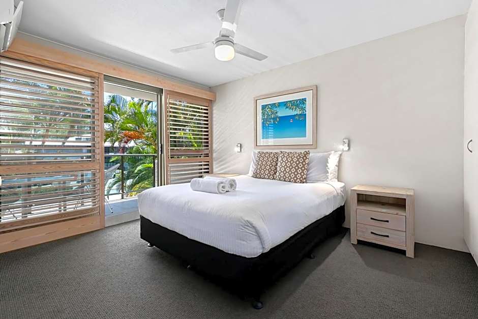 This 1-bedroom apartment features a large open plan living room offering partial views over the pool, the Noosa River and Lagoon. There is a fully equipped kitchen, a semi-private bathroom and a separate laundry and toilet. A private patio and/or balcony is included.