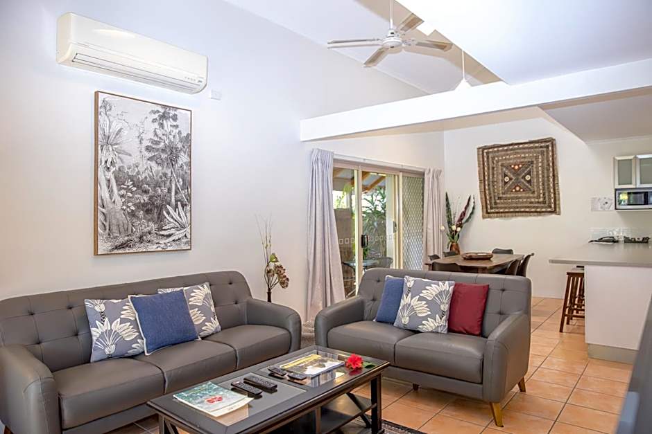 Three-Bedroom Villas are air-conditioned and include full laundry and kitchen facilities. The living areas feature a flat-screen TV with DVD player. One of the bedrooms has a TV. There is unlimited WiFi and a direct dial phone in the villa.