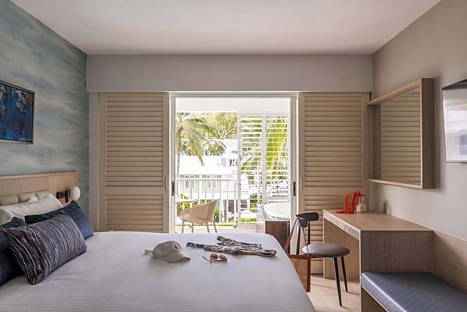 Set along a palm-fringed beachfront in Palm Cove, the scene is built for sun-soaked days. A sun deck frames garden views, with beach chairs and loungers ready to catch the tide, and a Bar to mix sunset sips. An outdoor swimming pool provides a refreshing dip, complemented by an adults-only pool for quieter moments.