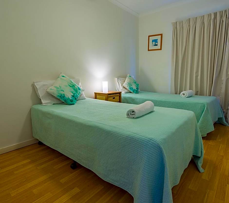 As walkers the position was great we could either walk to the gorge walk or to bowling club and cafes in the opposite direction. Cylinder Beach and hotel were just down the road as well. Our unit was quiet even though close to the pool and tennis court and it was during the school holidays. The unit was fully self contained and cool enough even without air conditioning.