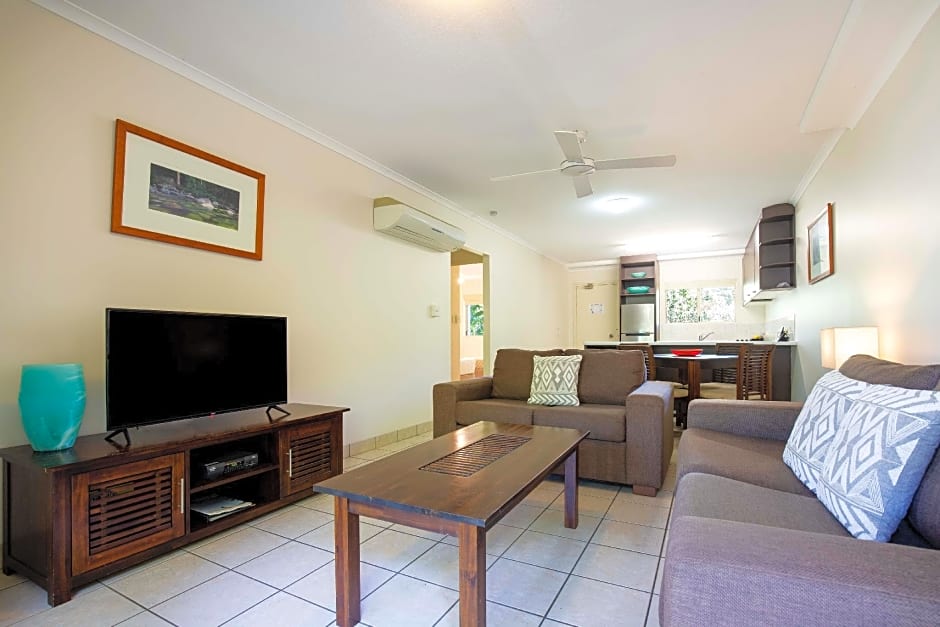 The pool was lovely. Nice spacious apartments with underground parking. Beds were comfy. Located not too far out of the main part of Port Douglas - short drive by car or bus.