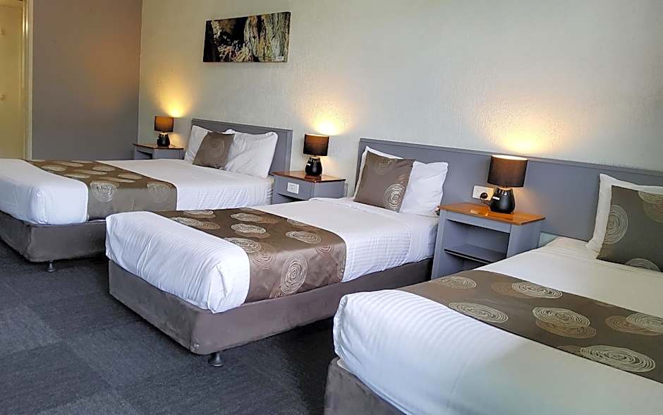 Please note pets cannot be accommodated in this room. Located on the first floor, these rooms have a Queen size bed and 2 Single beds. The room has an en-suite, air-conditioning, flat screen smart TV, tea & coffee facilities, bar fridge, microwave, toaster, hairdryer, iron, ironing board, free wi-fi.
